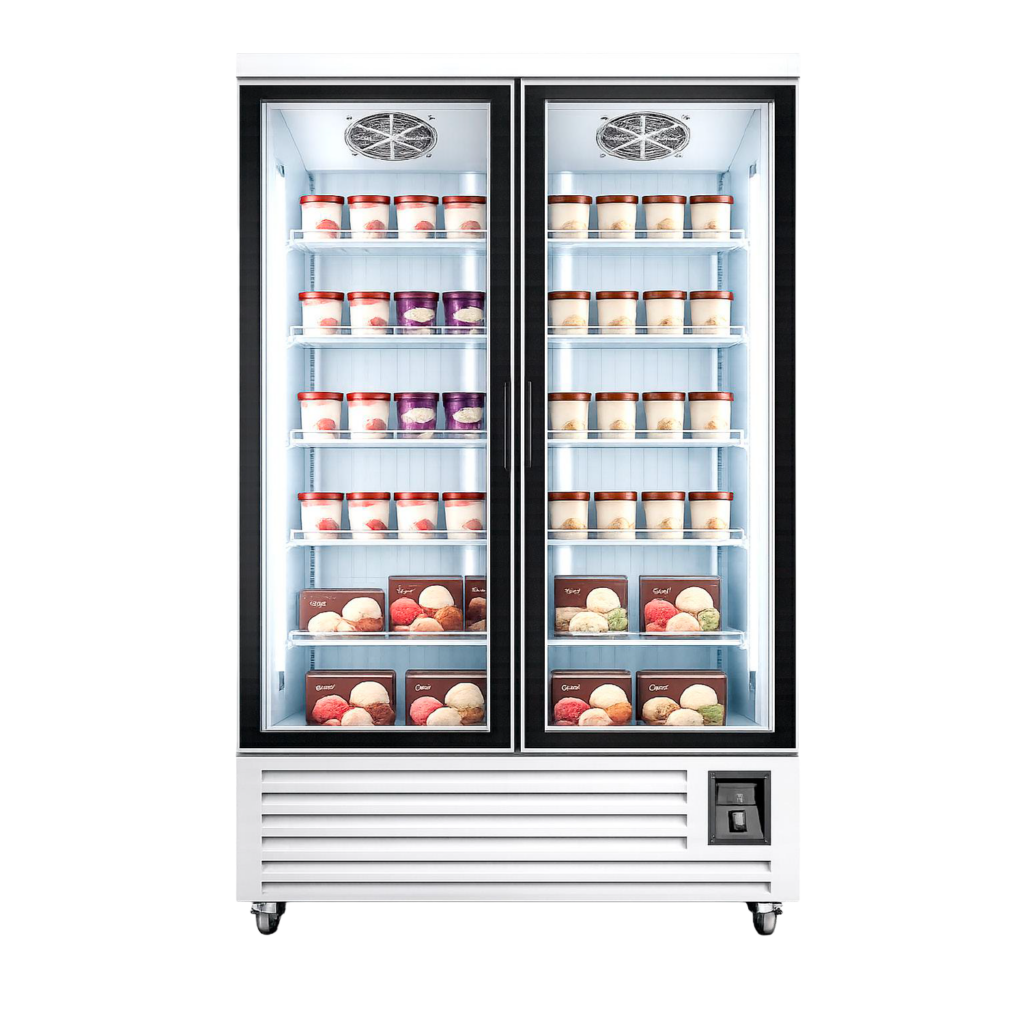 Diseñado para durabilidad y movilidad, con capacidad de enfriamiento y visualización de productos.
